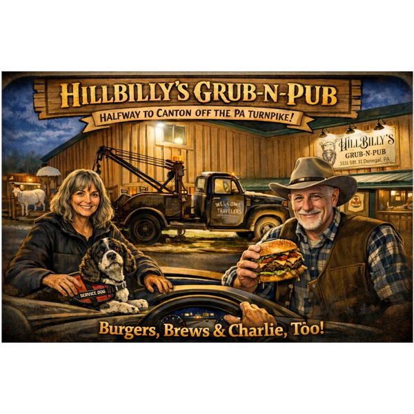 Five and a half hours on the PA Turnpike demands a mercy stop. Found it at Hillbilly’s Grub & Pub near Donegal. Bison, elk, boar, wagyu burger, pour-your-own taps, and a service dog negotiating for fries. Worth every mile off the exit. Some roadside stops fuel the RV. Some reset the soul. Hillbilly’s did both. Friendly people, winter décor, stories on the walls, and then back to the highway. Halfway stops matter more than we admit.