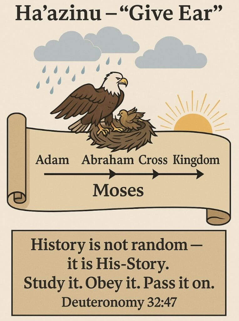 Ha’azinu (Deuteronomy 32:1-52), means “give ear.” It is a Hebrew call to listen carefully to what follows. It is the name of the ...